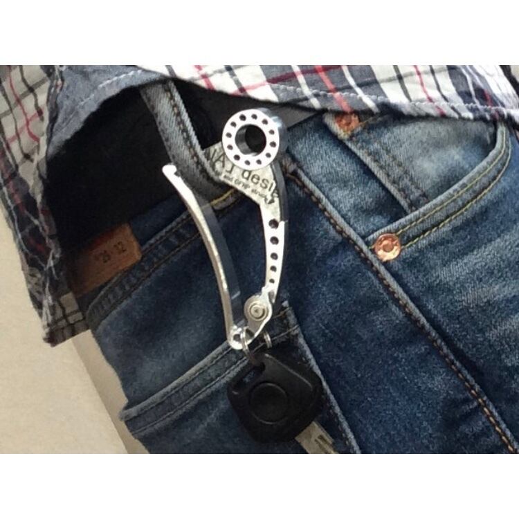 アルミ、またはジュラルミンの切削加工部品で構成された、「NA」designらしいカタチ、機能を追求したカラビナタイプのキーホルダーです。