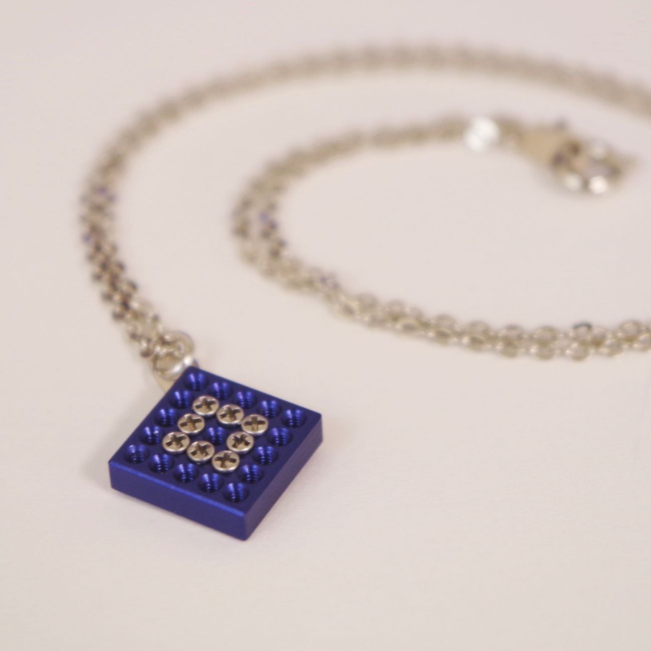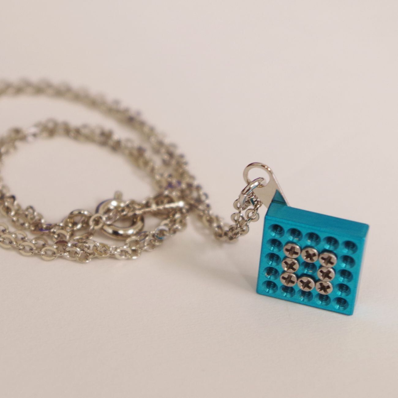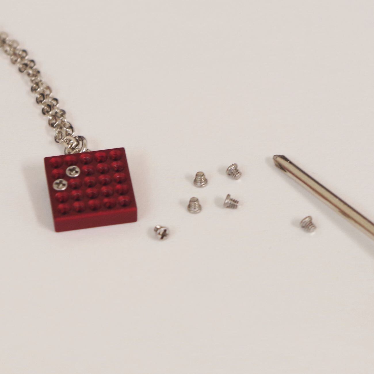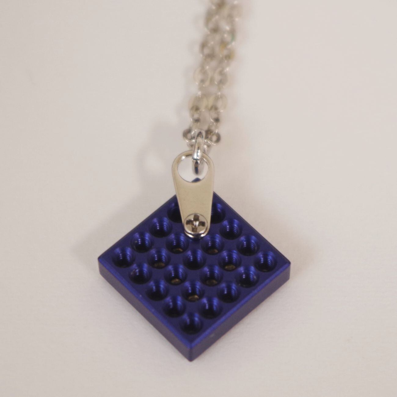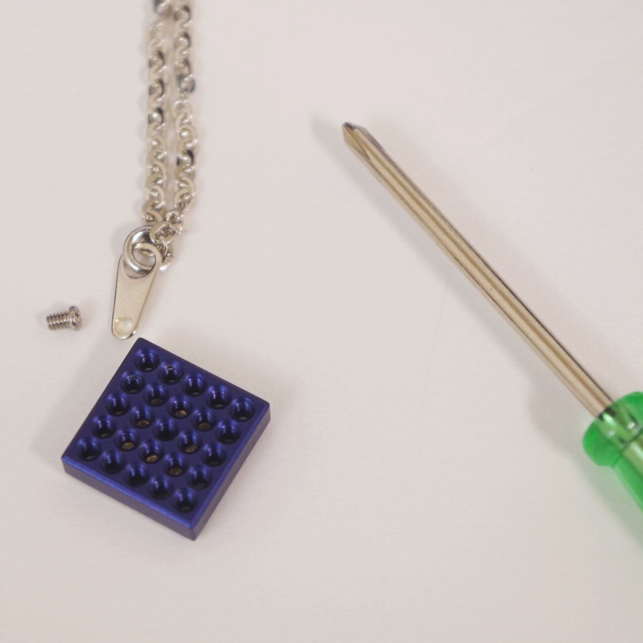 ・チェーンに通す金具は本体プレートの好きなところにネジ留め可能なので、□でも◇でも首から提げた時の傾きを変えられます。